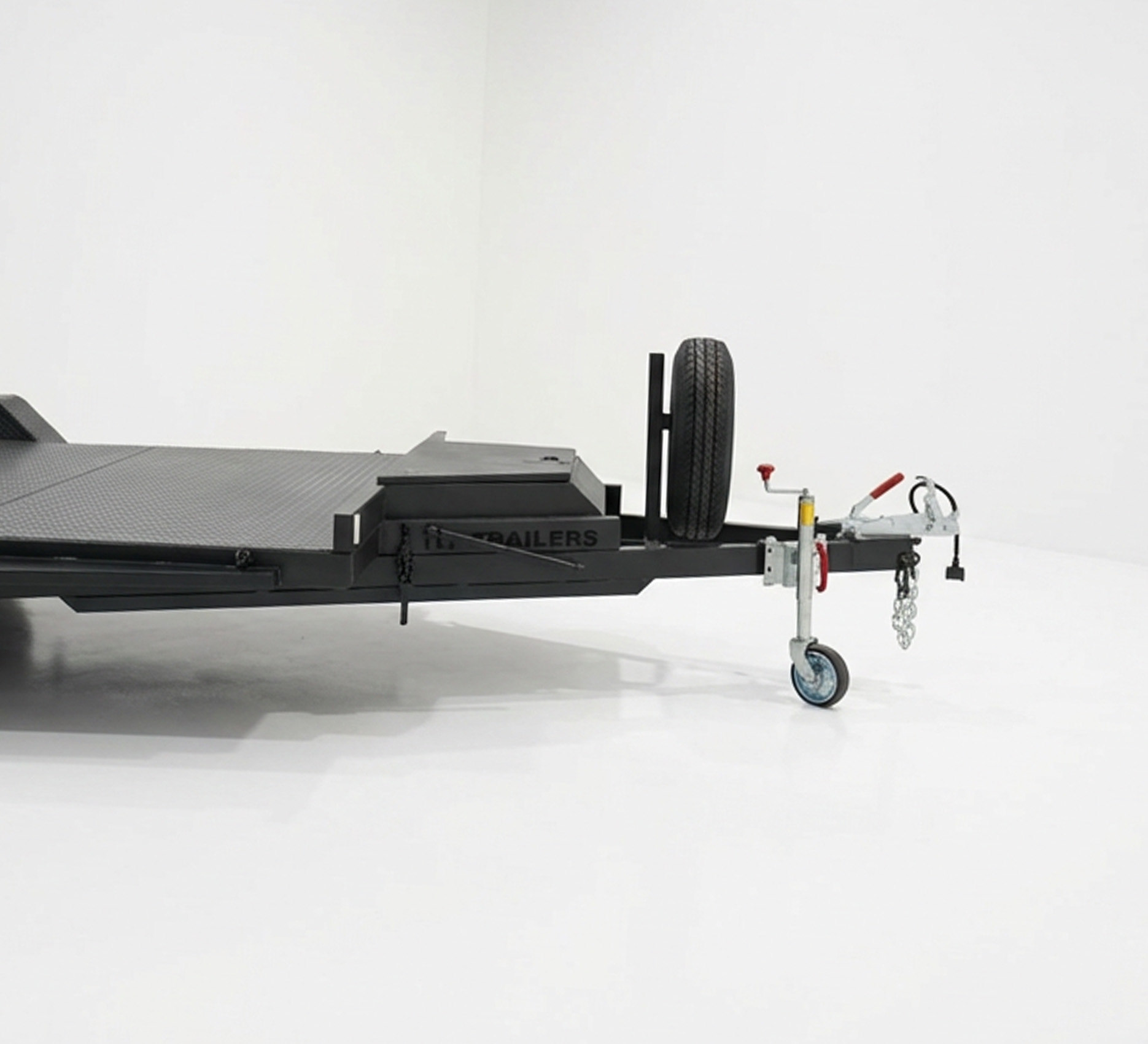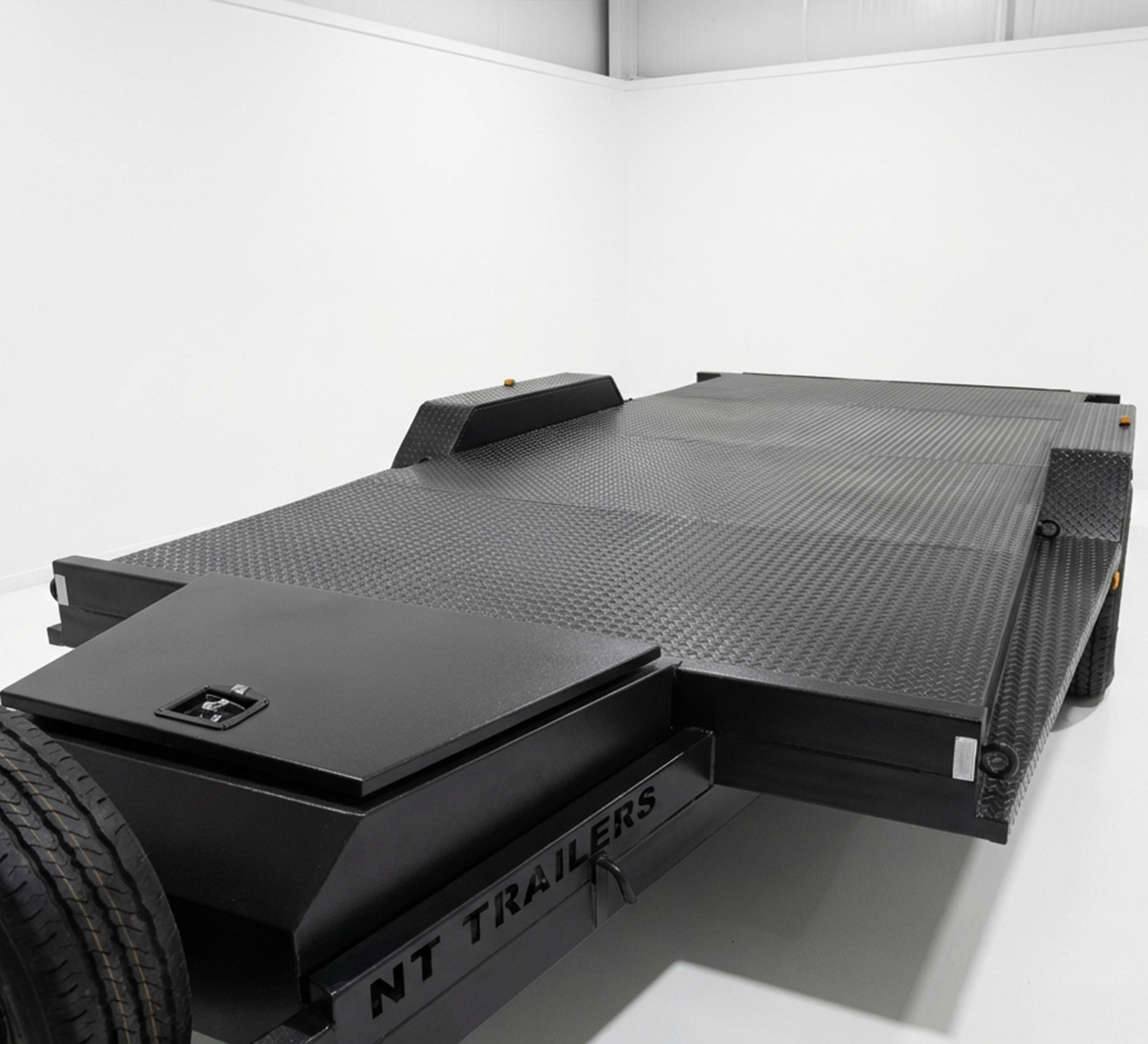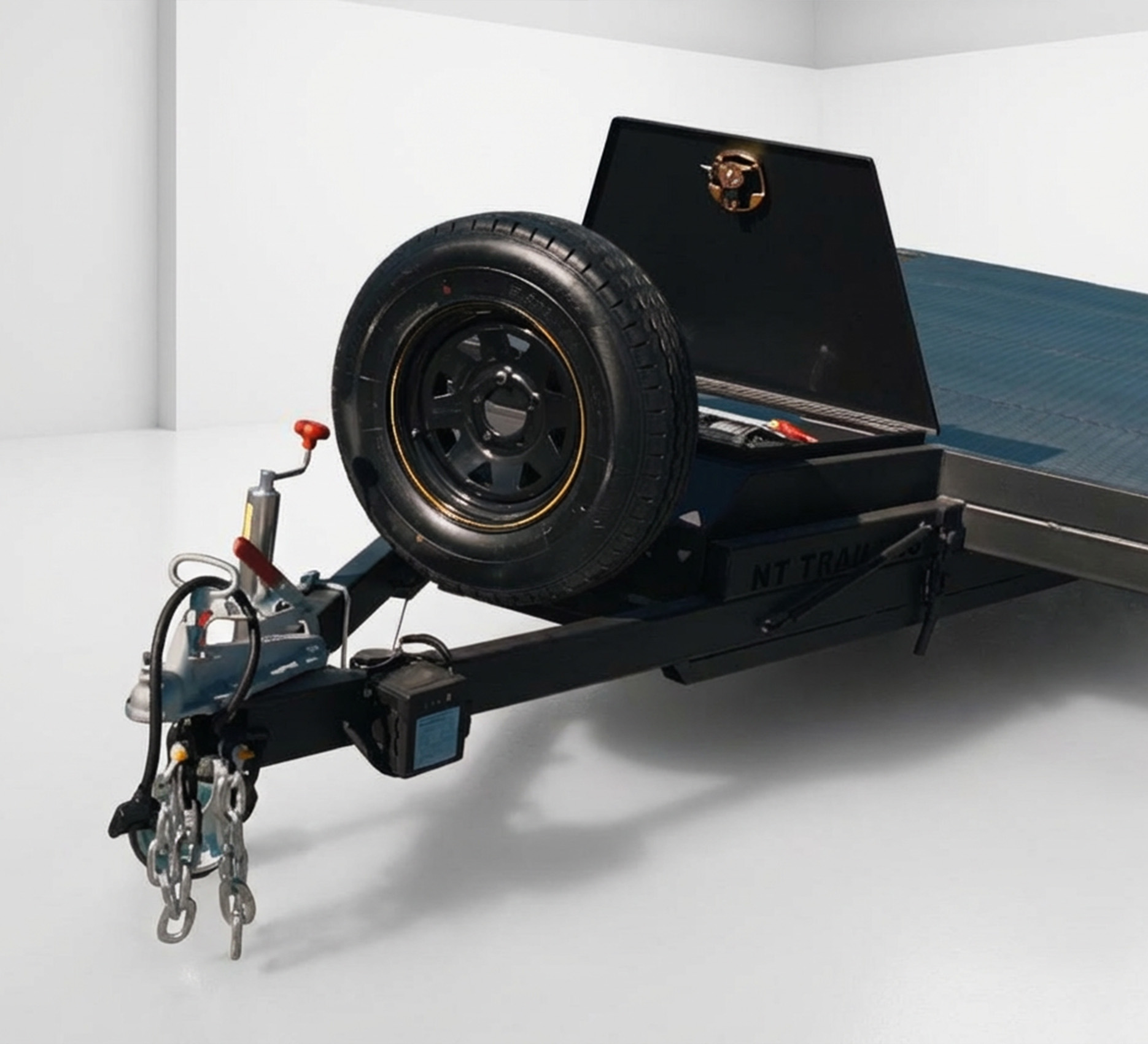 Our Tilt Car Trailer is built to provide superior strength, durability, and functionality for transporting vehicles. Features a fully welded chassis with ATM of 3200kg, 16ft x 6.6ft perforated race deck for superior grip and drainage, and beavertail design for easy loading of low vehicles. Equipped with extended long drawbar, winch post, 4-wheel electric braking with breakaway system, and load share suspension for reliable performance.