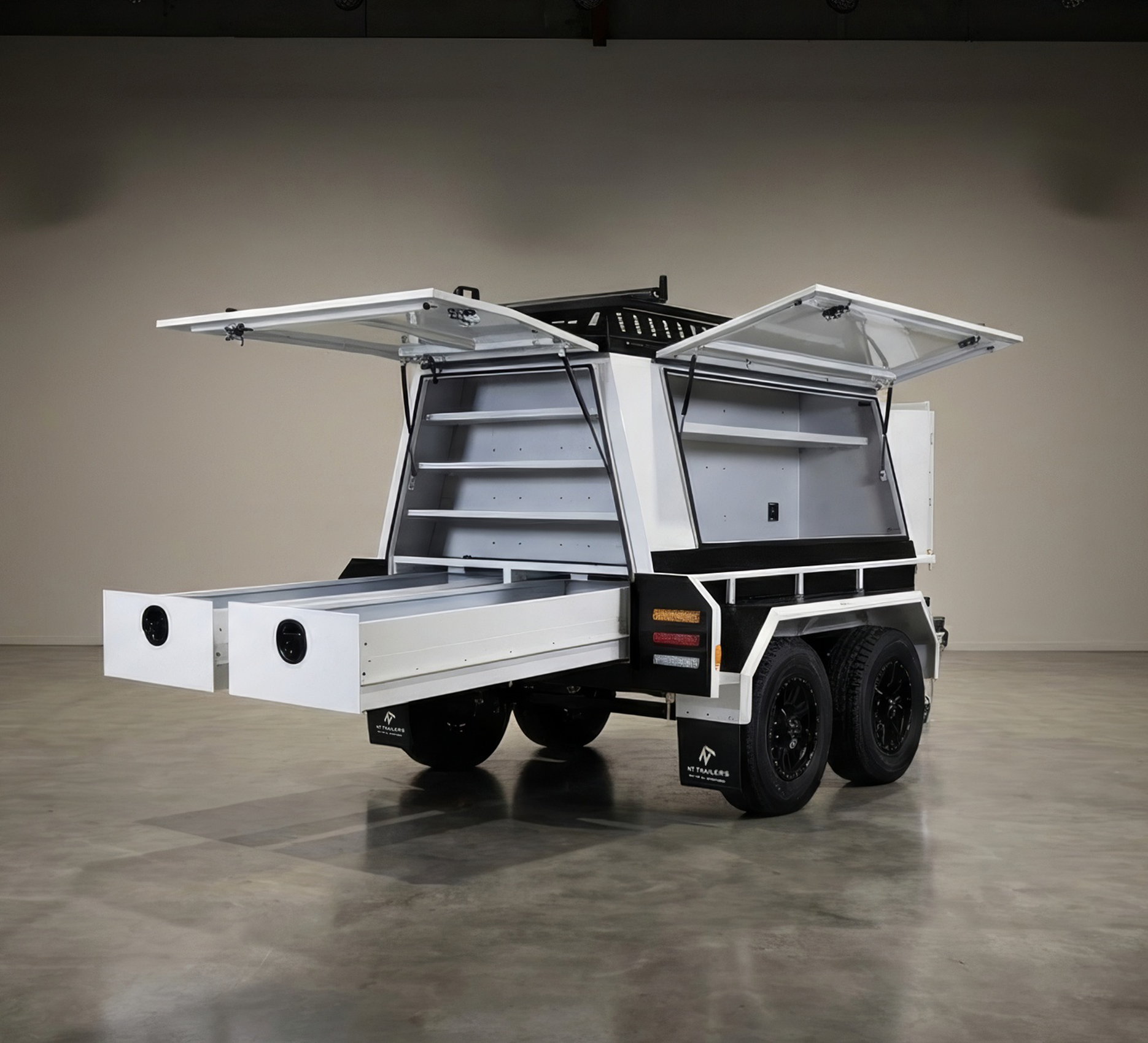 Professional builders trailers engineered for durability and maximum functionality. Features multiple storage solutions, heavy-duty construction, and professional-grade components for construction environments.